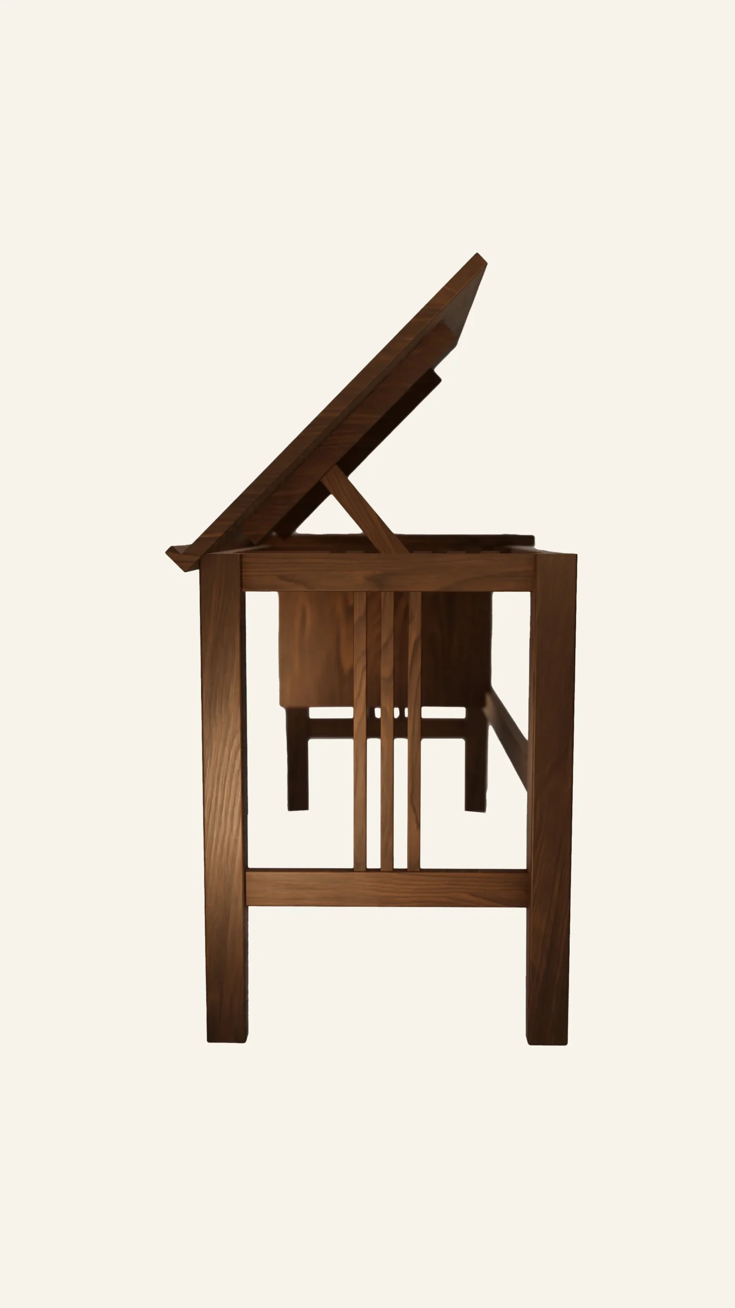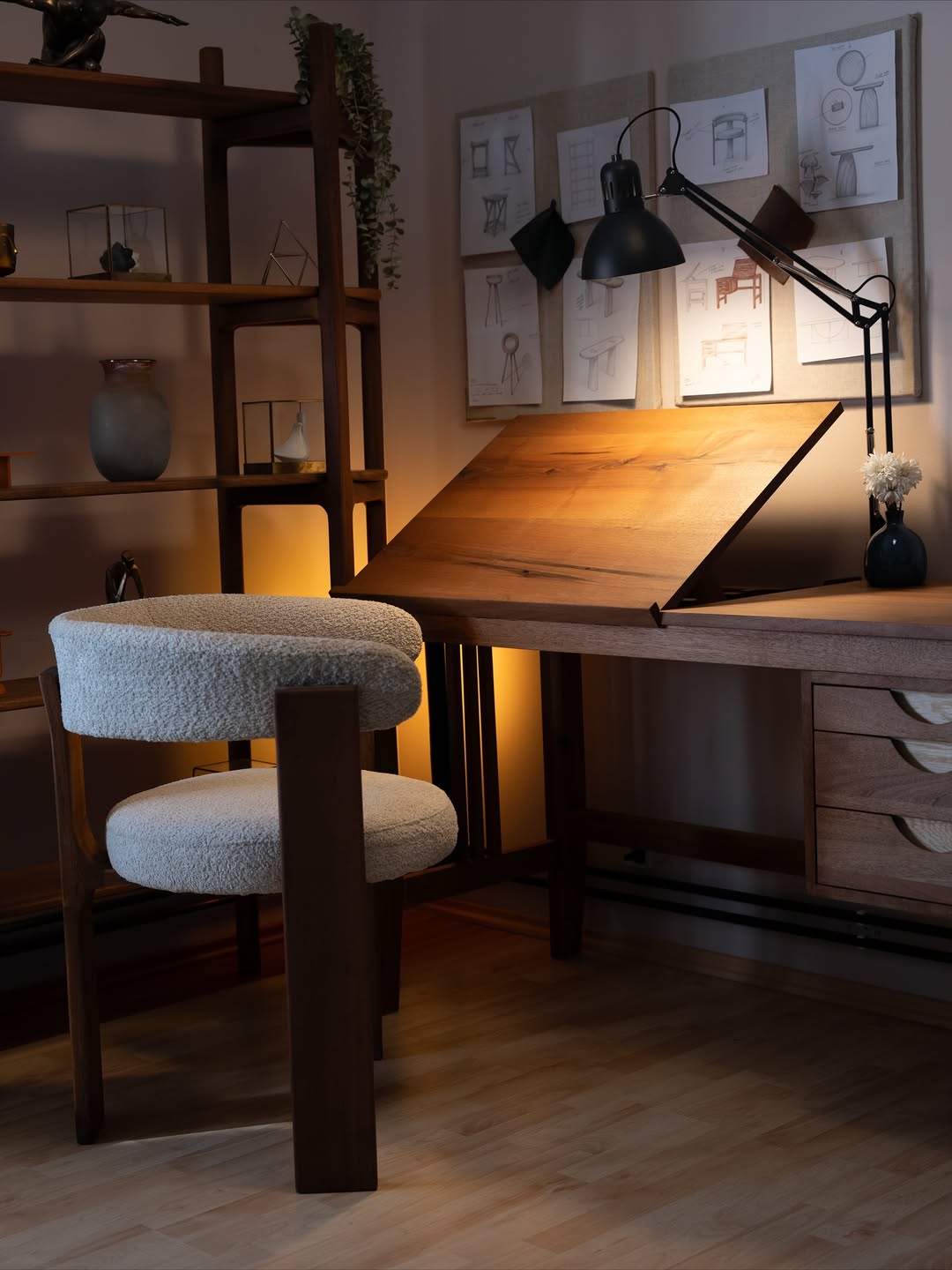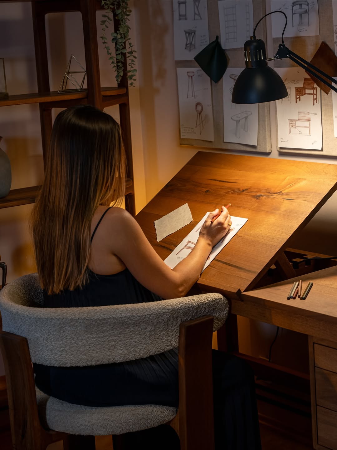 - A handcrafted walnut desk with a vintage touch — built for sketching, designing, and creating, inspired by the classic architects’ workstations.