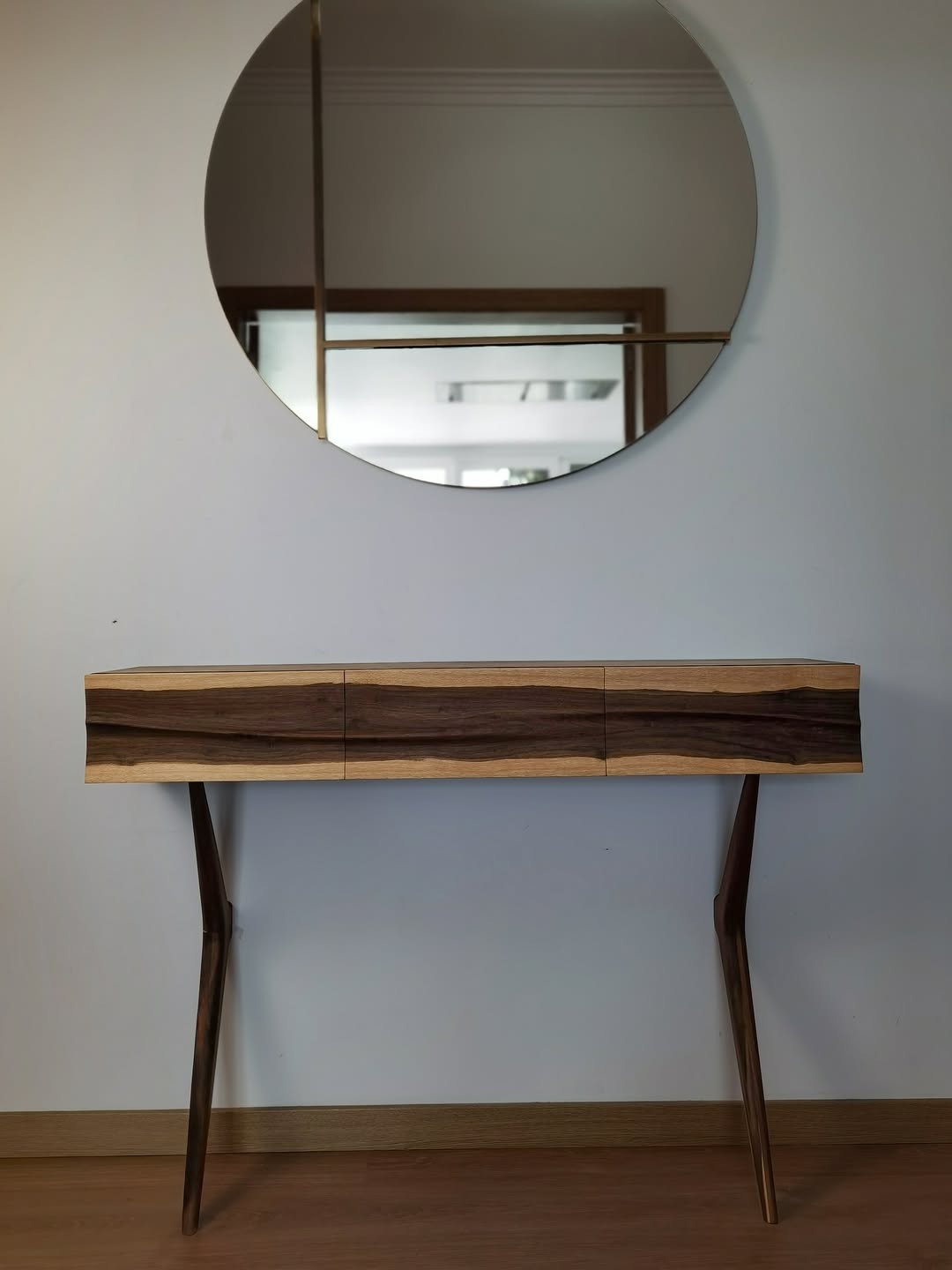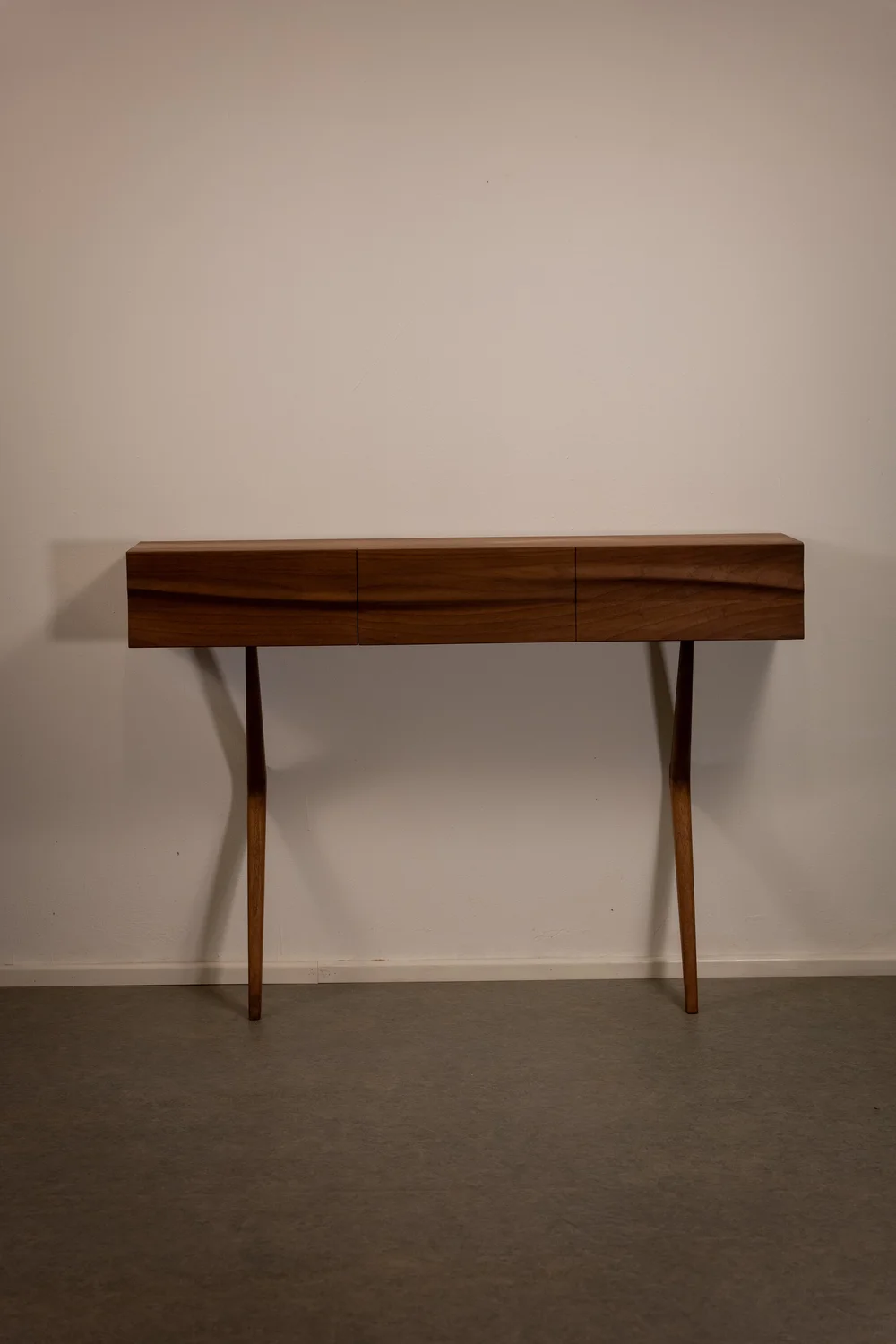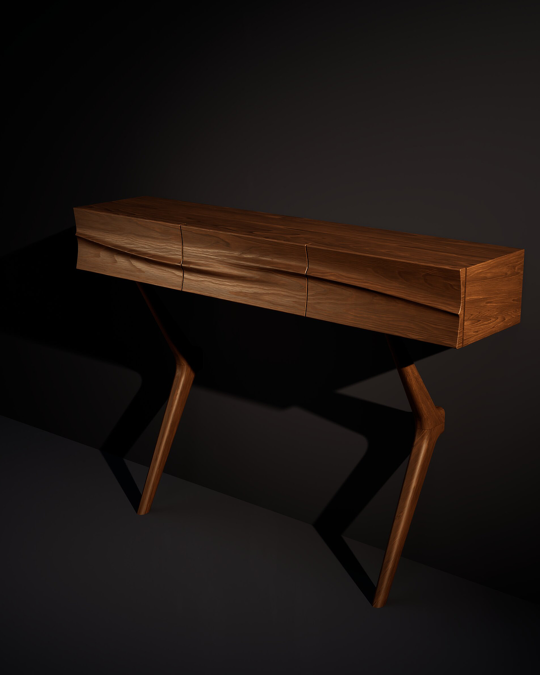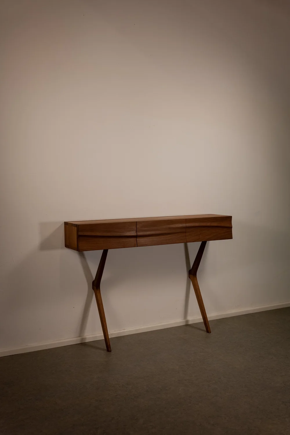 - One of my signature pieces — an entry console with hand-sculpted drawer fronts and elegantly shaped legs.